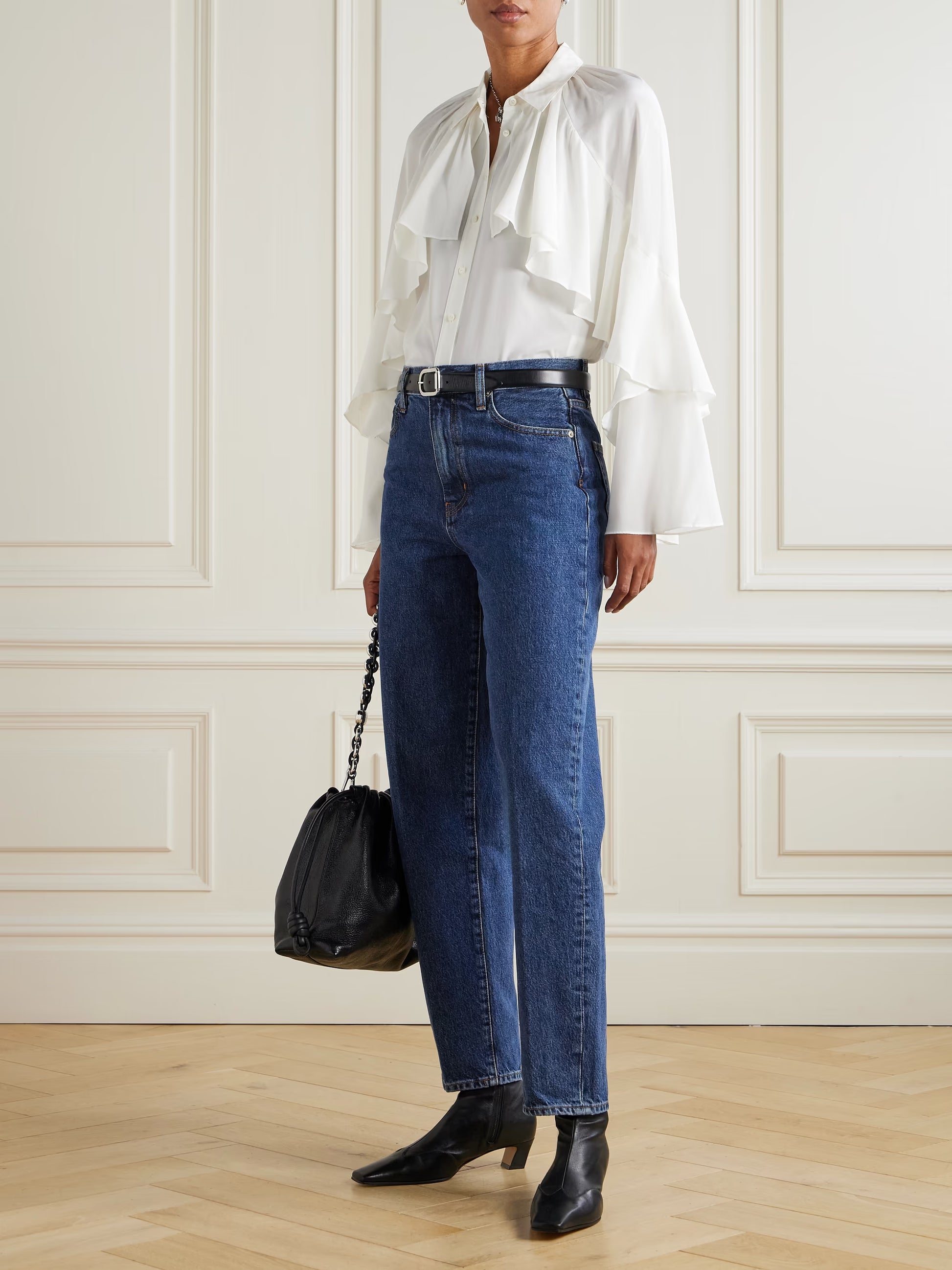 FRAME's 'The Neat' jeans are named for their clean straight-leg shape. They're made from rigid denim that'll soften with each wear and come in a slightly faded blue wash the brand calls 'Lavish'. Tuck a tank or turtleneck into the high waist, depending on the season.